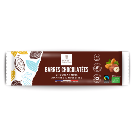 Barres chocolatées au chocolat noir amandes noisettes bio équitable Bovetti : Pour des goûters encore plus gourmands à tout moment de la journée !