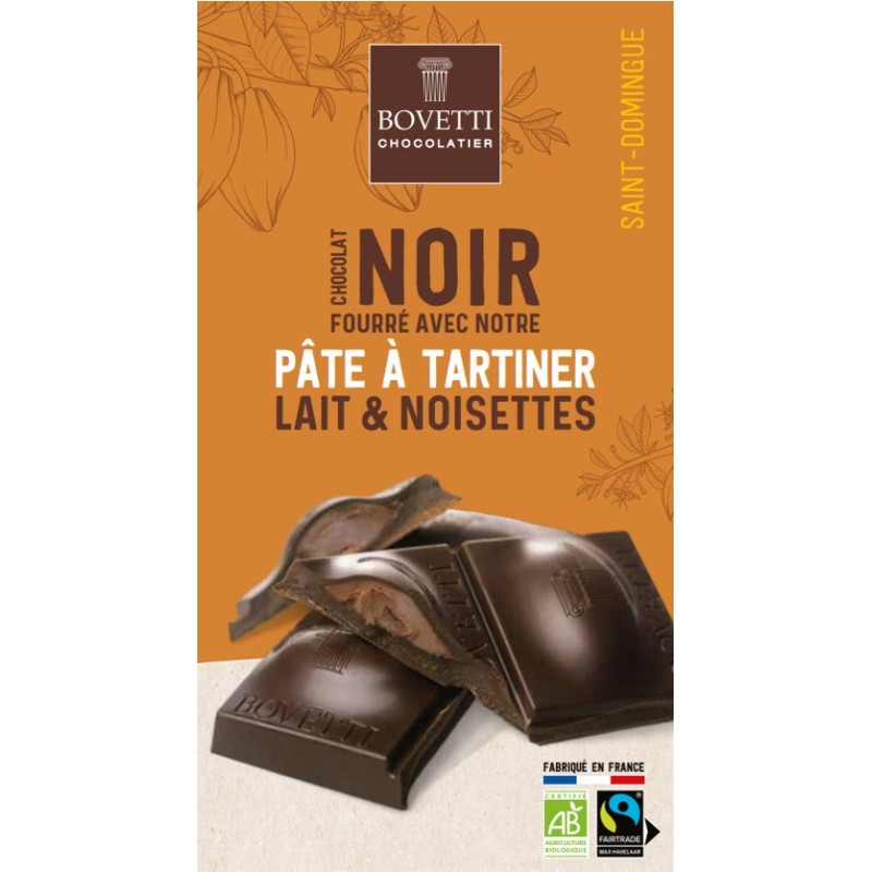 Tablette chocolat noir fourrée à la pâte à tartiner au chocolat au lait et noisettes - 100g